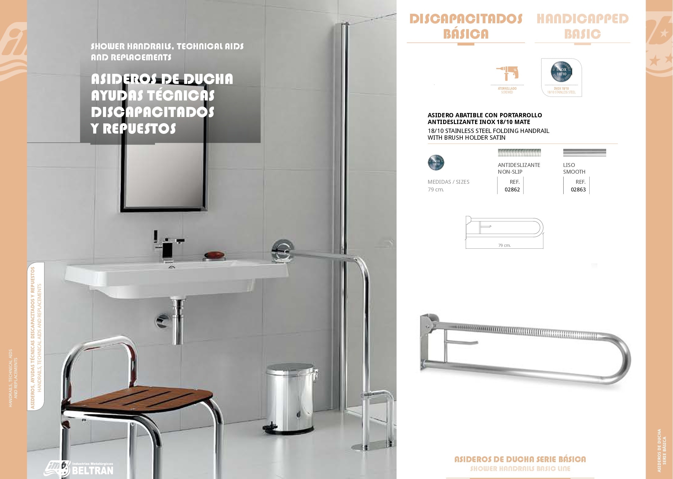 Asidero Abatible con Portarollo Antideslizante Inox 18-10 Mate - Discapacitados Básica