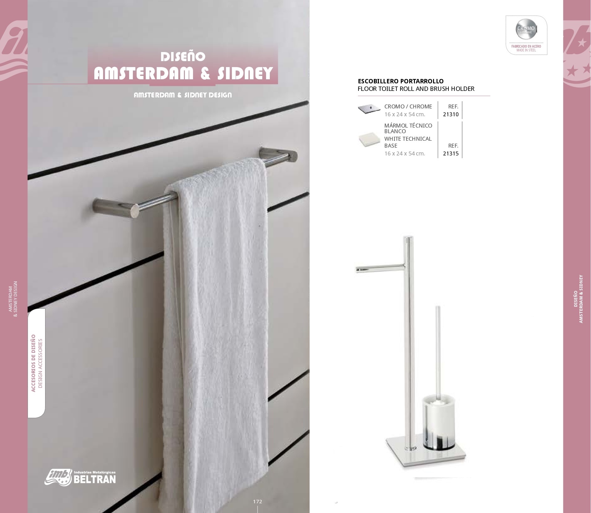 Escobillero Portarollo Amsterdam & Sidney Accesorios de diseño Medidas 16 x 24 x 54 cm. (Cromo) 16 x 24 x 54 cm. (Mármol Técnico Blanco) Referencias 21310, 21315 Serie Diseño Amsterdam & Sidney. Acabados Bases Materiales de Fabricación Fabricado en Acero. Portarollo Amsterdam & Sidney Repuesto Papel Escobillero Portarollo Amsterdam & Sidney con Anilla Giratorio